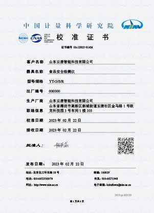 食品校準(zhǔn)證書