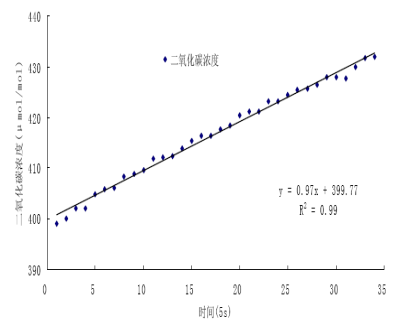 圖a  RR-7330 測量系統(tǒng)測量閉路箱內(nèi)CO2累積過程及線性關(guān)系(中國農(nóng)業(yè)大學(xué),韓廣魯,2010)