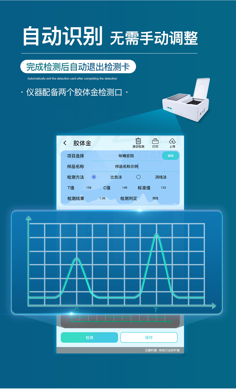 6)膠體金模塊檢測方式:單通道CMOS成像探測,插入式自動傳輸掃描。